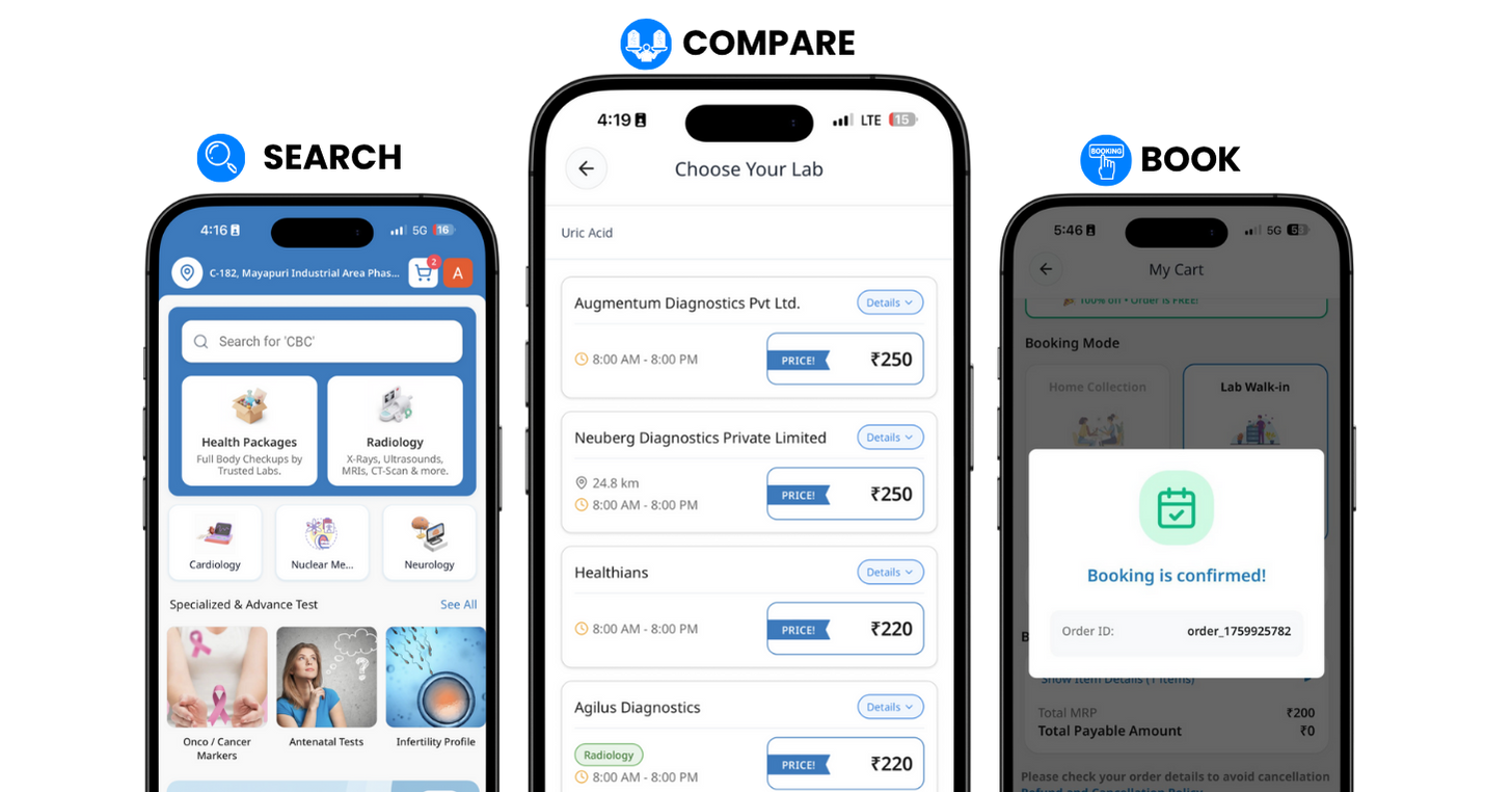 Find and book lab tests easily — all from the comfort of your home.